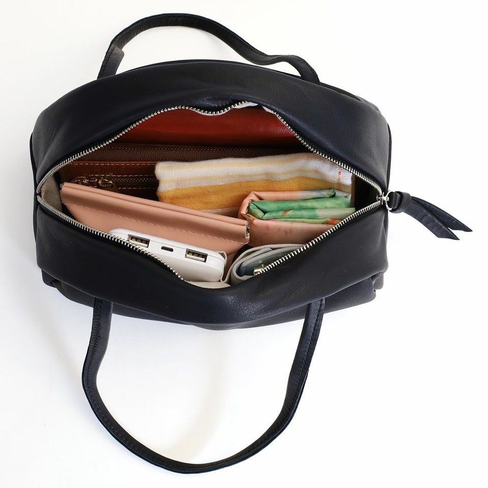 内側にはオープン・ファスナーの2タイプのポケットがあり、鍵やスマートフォンなどの小物の収納に便利です。