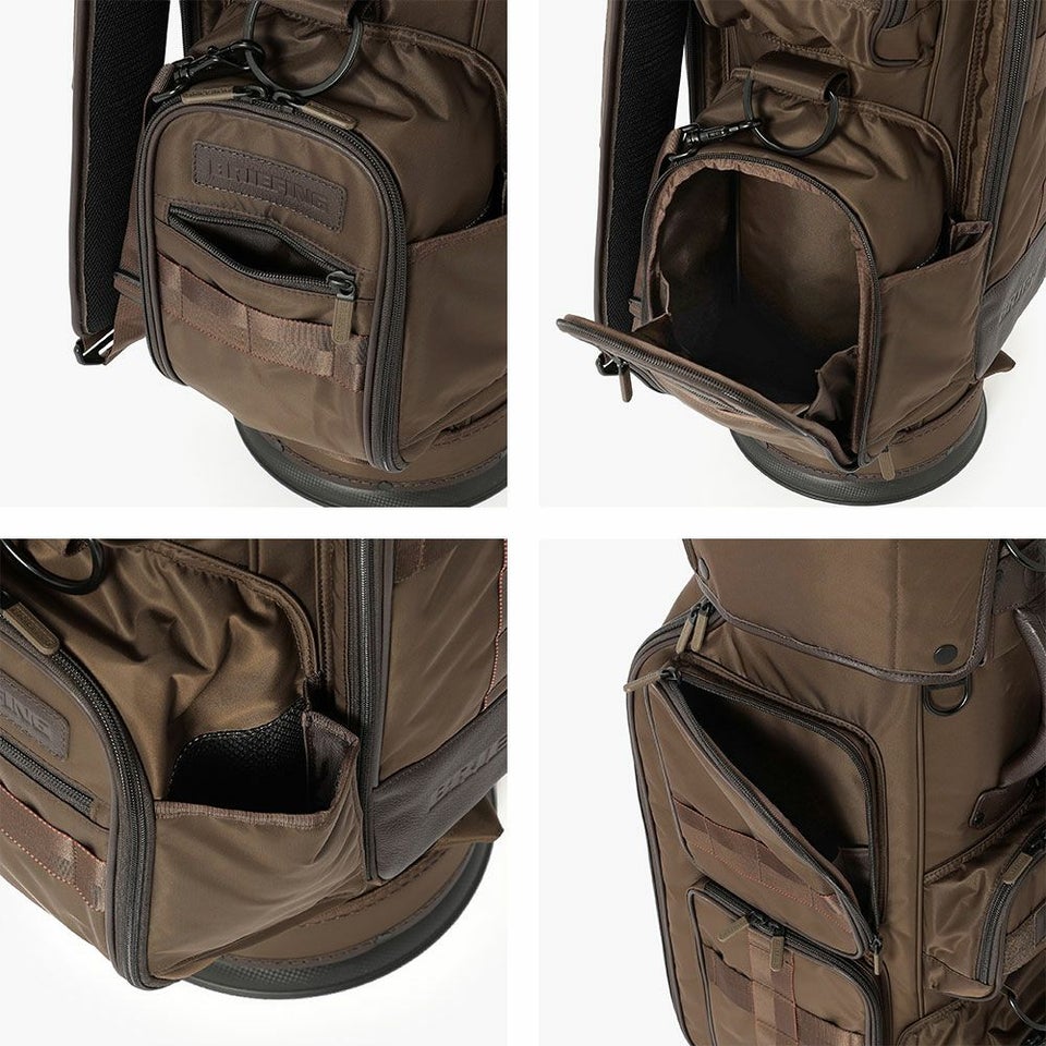 オリジナル開発のコーデュラナイロンツイルを使用し上品な光沢と高い耐久性を両立した特別素材を採用しています。艶のあるブライト糸と落ち着いたセミダル糸を織り合わせることで表情豊かな質感を実現し雨や汚れにも強い撥水加工でゴルフシーンを快適に彩ります。