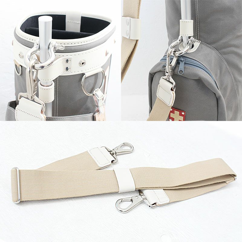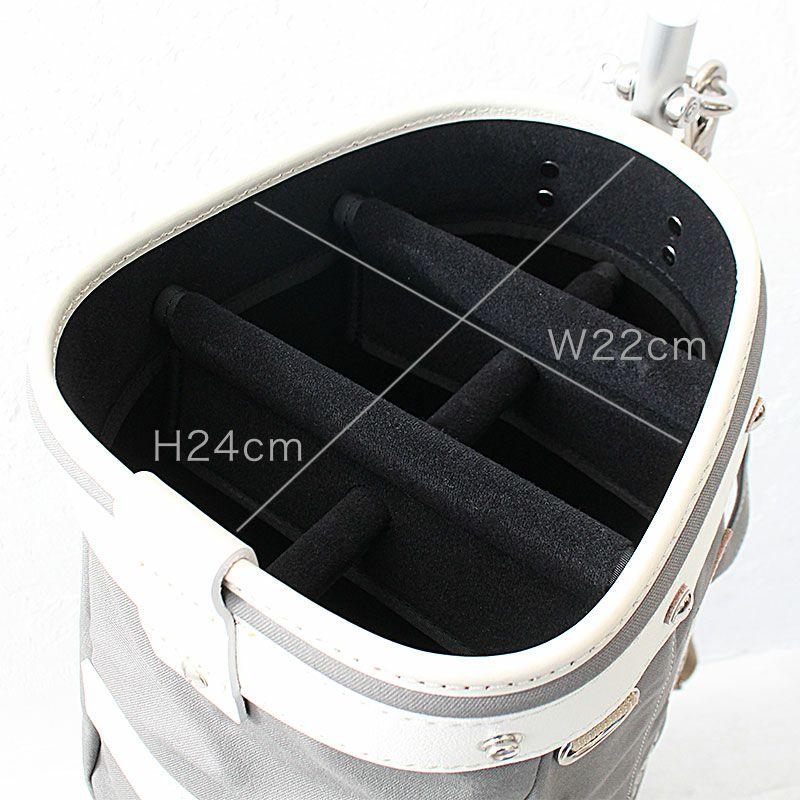 このバッグは本格ベジタブルタンニンレザーを組み合わせた贅沢な仕様となっており、オリジナルキャディパイプフレームによる抜群の担ぎやすさ、三角形状メタルフレーム(口枠)による圧倒的な安定性、豊富なカラーバリエーションが特徴です。