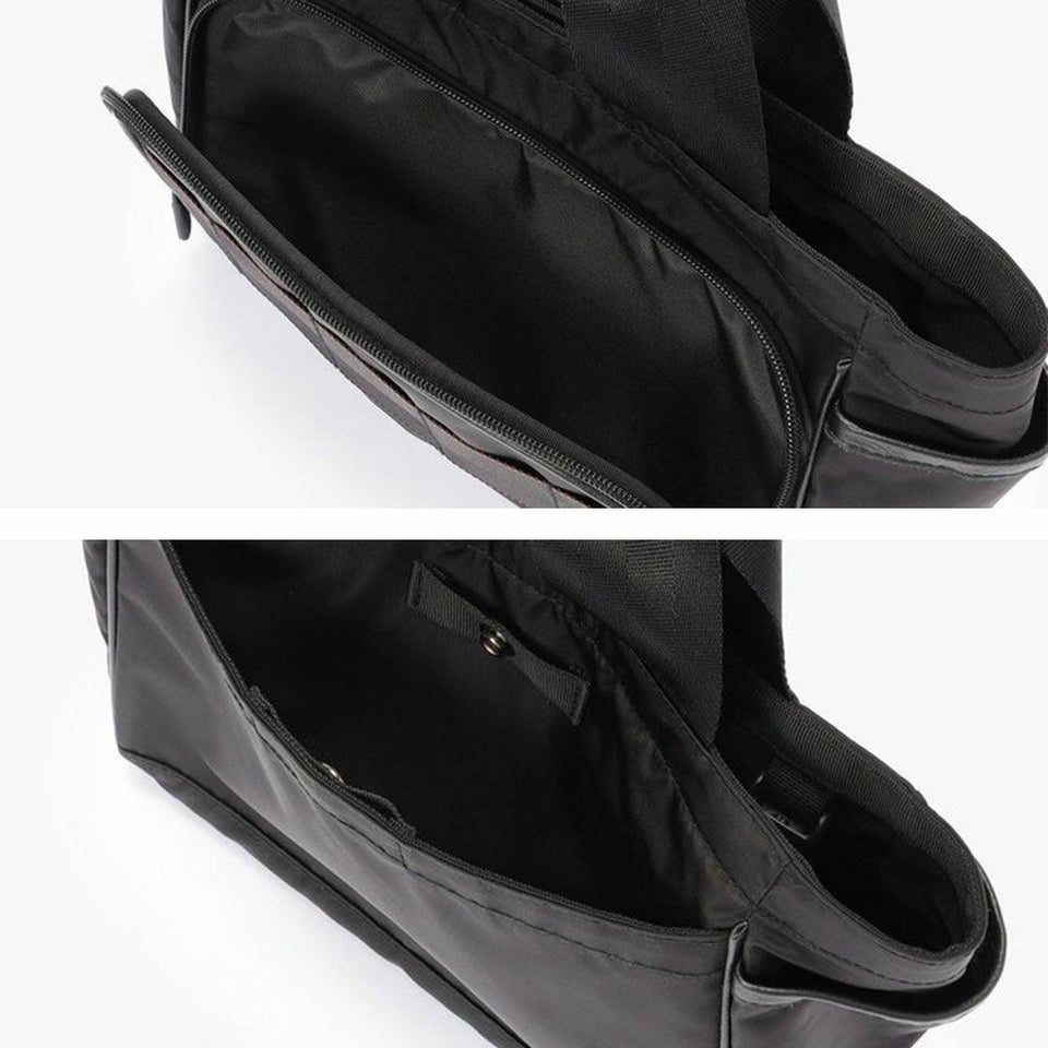 オリジナル開発のコーデュラ(R)ナイロンツイルを採用。表はブライト糸、裏はセミダル糸で織り上げることで、上品な艶感と奥行きのある表情を演出。