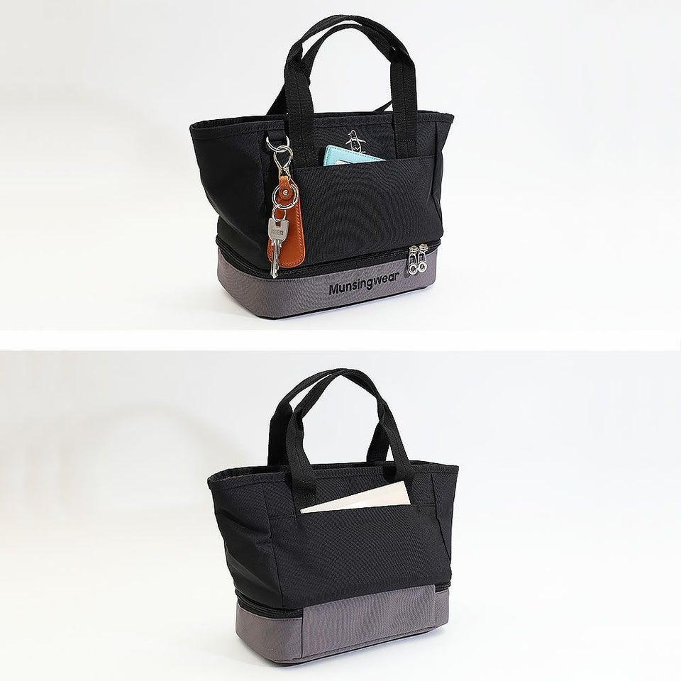 下部には保冷機能を備え、500mlのペットボトルを2本収納できる容量を確保しています。暑い季節のラウンドでも冷たい飲み物を持ち運べるのが魅力です。濡れた物を分けて入れるなど、状況に応じた使い方ができる点も便利です。