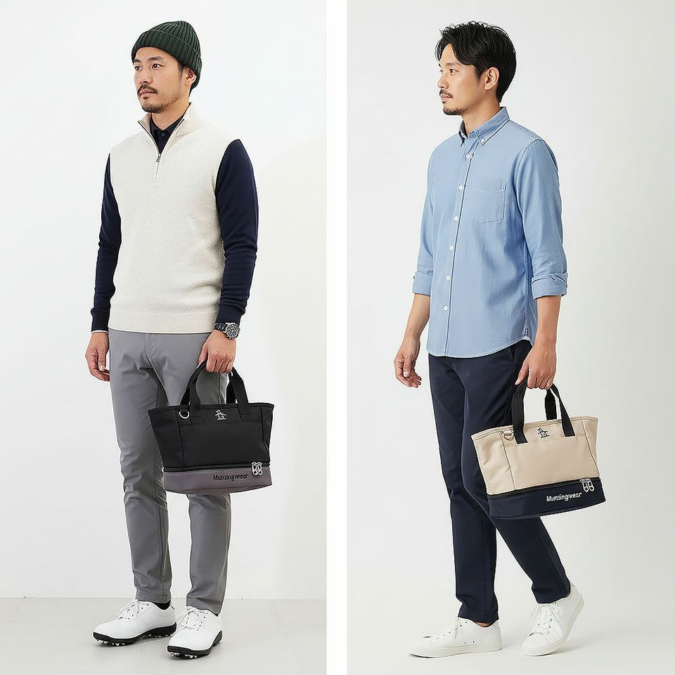 抑えたシックなカラーとクセのないフォルムで、ゴルフ以外のシーンにも自然に対応します。ちょっとした外出やランチバッグとしても活躍し、用途を限定しません。ひとつ持っておくことで、幅広いシーンに使える実用性の高いバッグです。