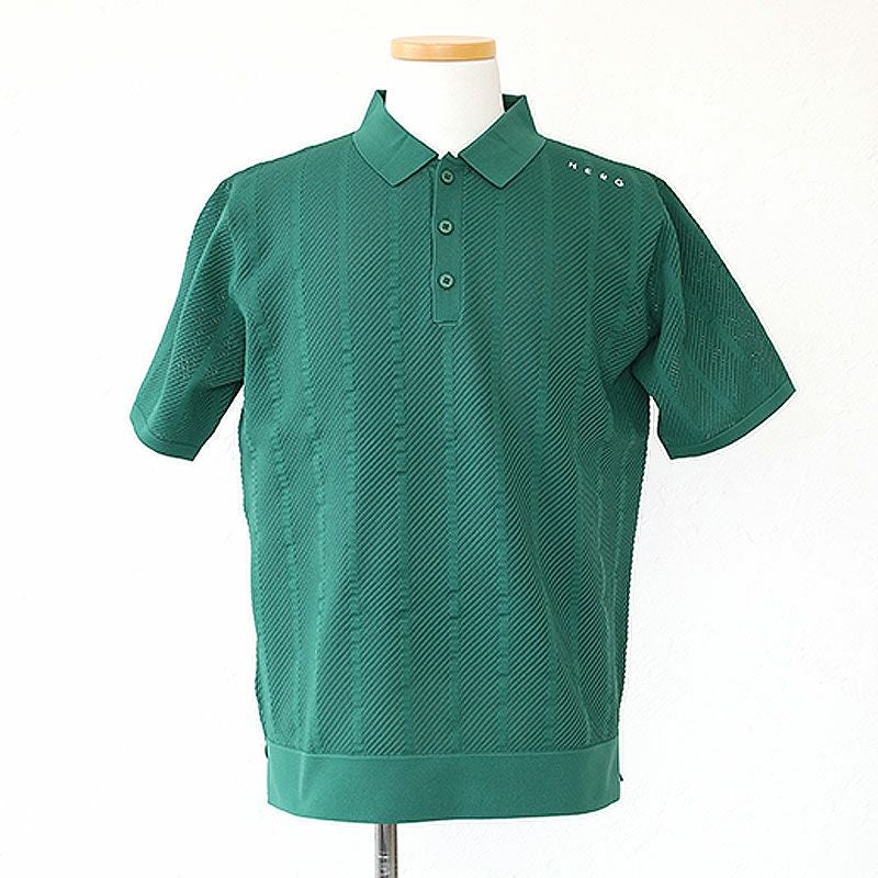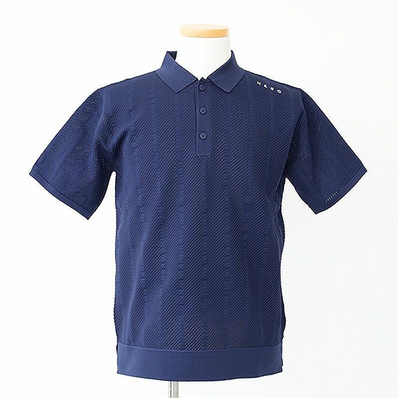 HERG1 ストライプメッシュニットポロ gu23pe14