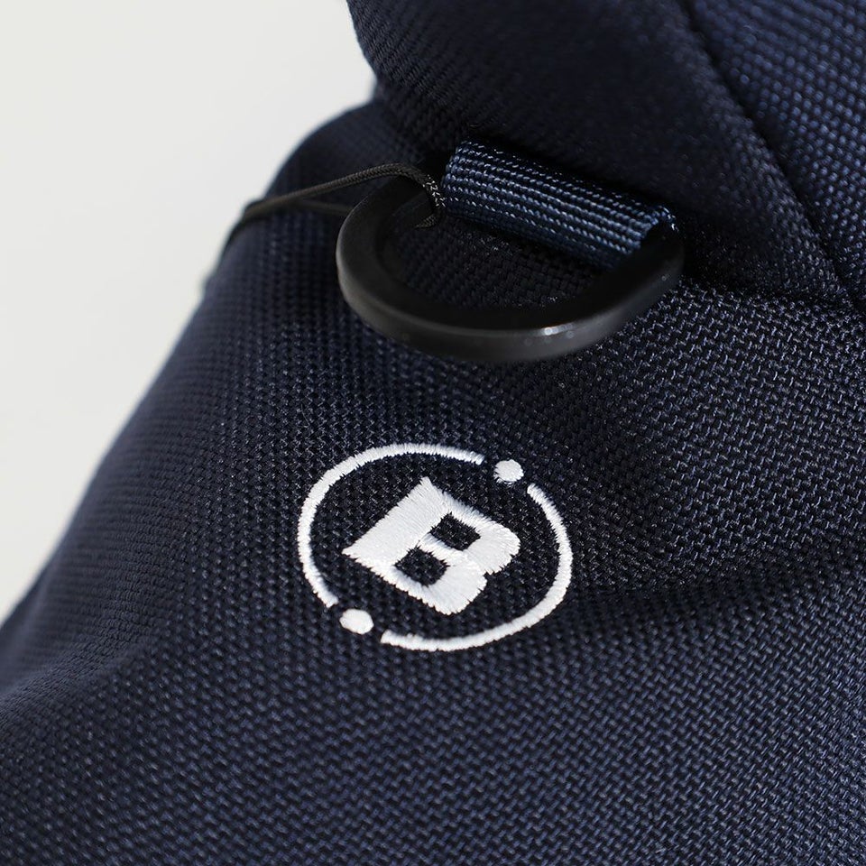 Bマーク刺繍と番手タグが首輪のようなアクセントに。3・5・7・Xのタグが付属。