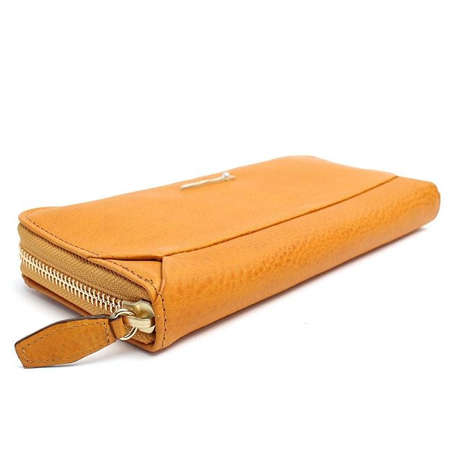 植物タンニン鞣しのイタリアンレザーに、ノーブルなパールブローチをあしらった上品な印象のラウンドファスナータイプの長財布です。
