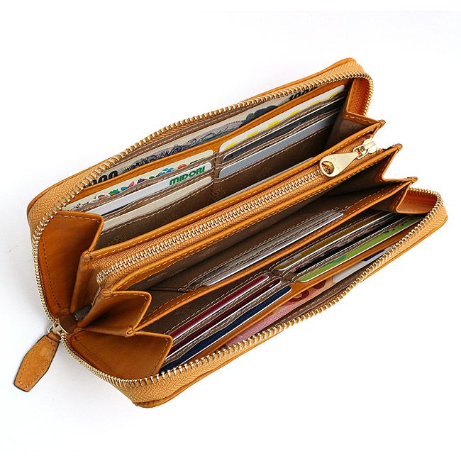上品な印象が引き立つ、ラウンドファスナータイプの長財布です。札入れスペースは3つあり、整理整頓もしやすい造り。ファスナー収納がL字型ファスナーなので大きく開き、小銭の出し入れがスムーズにできます。カードが18枚入る、実用的なデザインです。