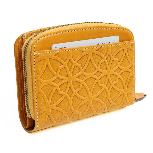 七宝紋と呼ばれる丸柄に花柄を組み合わせた優しい柄ゆきのお財布シリーズ「リリーヴォ」