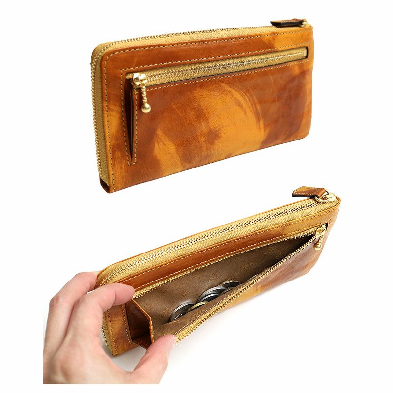 艶のある色合いと、目を惹くブラシ柄のデザインが魅力のロングウォレットです。