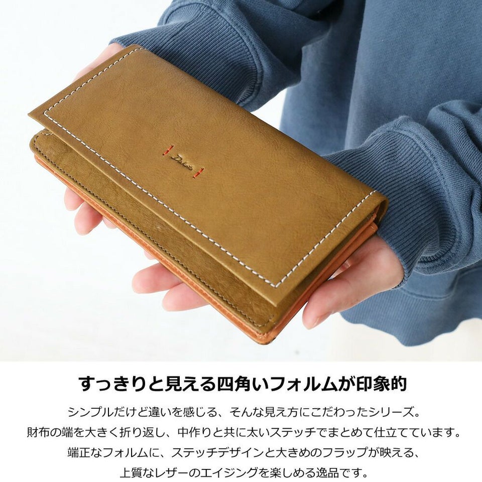 スッキリした四角いフォルムが印象的な、フラップ式長財布です。