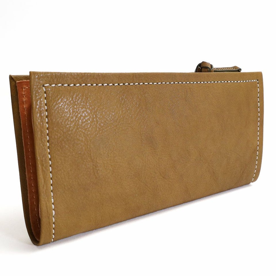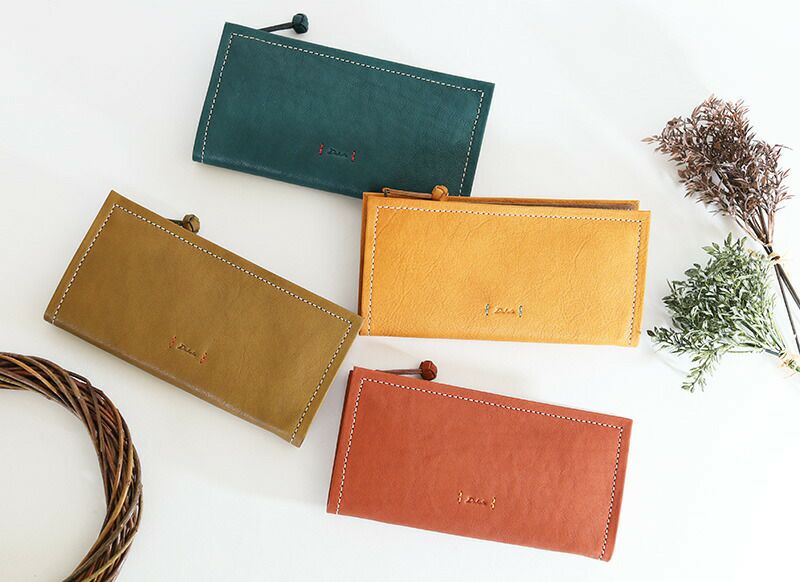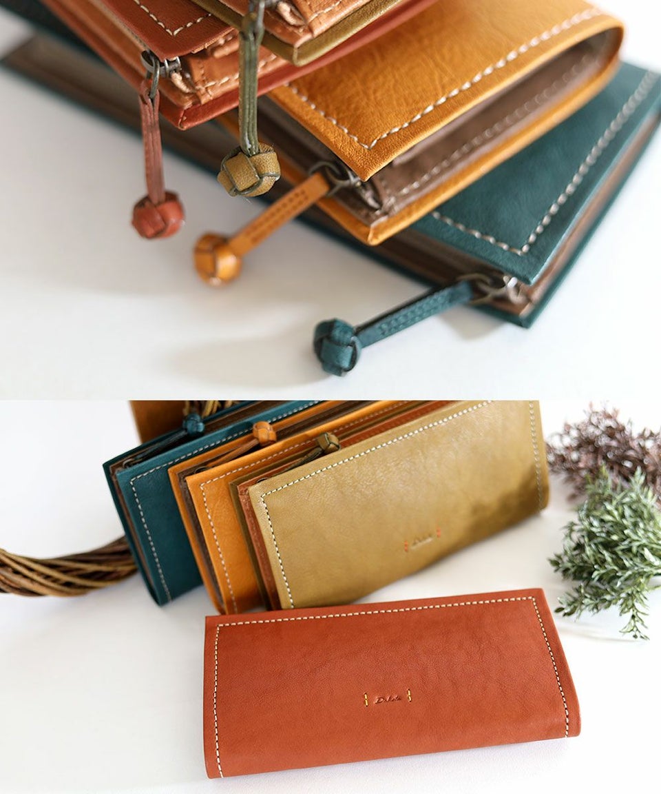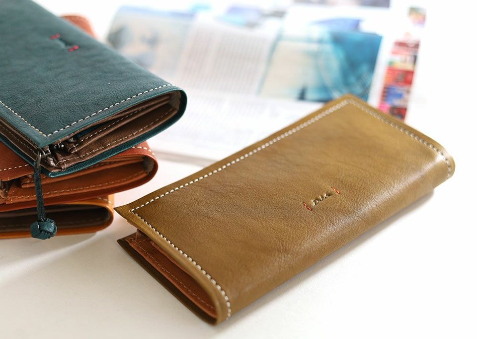 スッキリした四角いフォルムが印象的な、L字型ファスナー式長財布です。