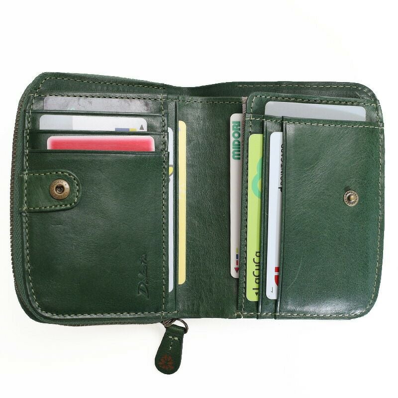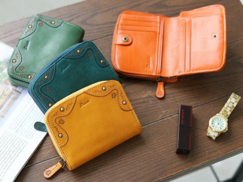 使うほどに艶や色の深みが増すイタリアンレザーとアンティーク感のある金具がマッチした、クラシカルな雰囲気のお財布です。