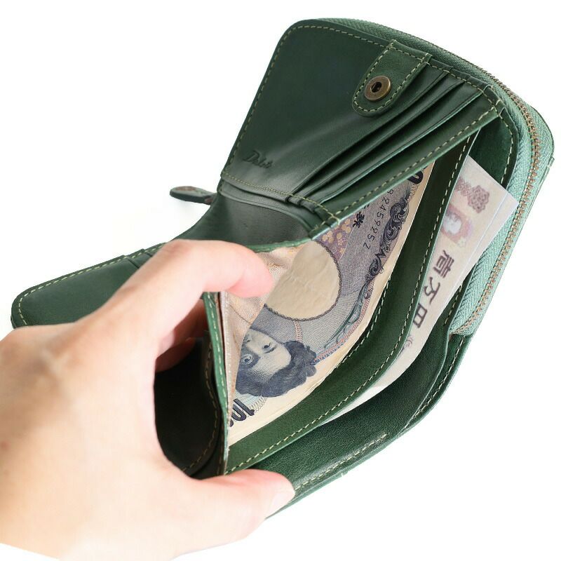 手にフィットするサイズ感の良い二つ折りウォレットです。