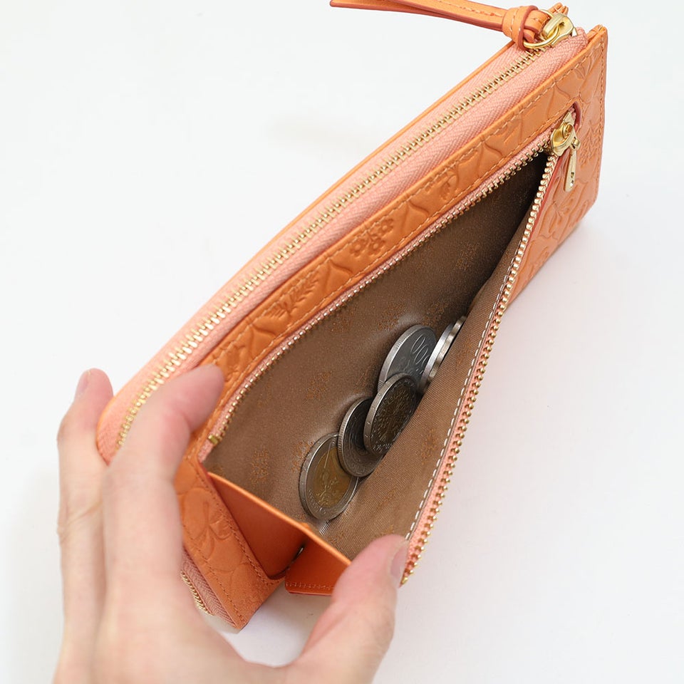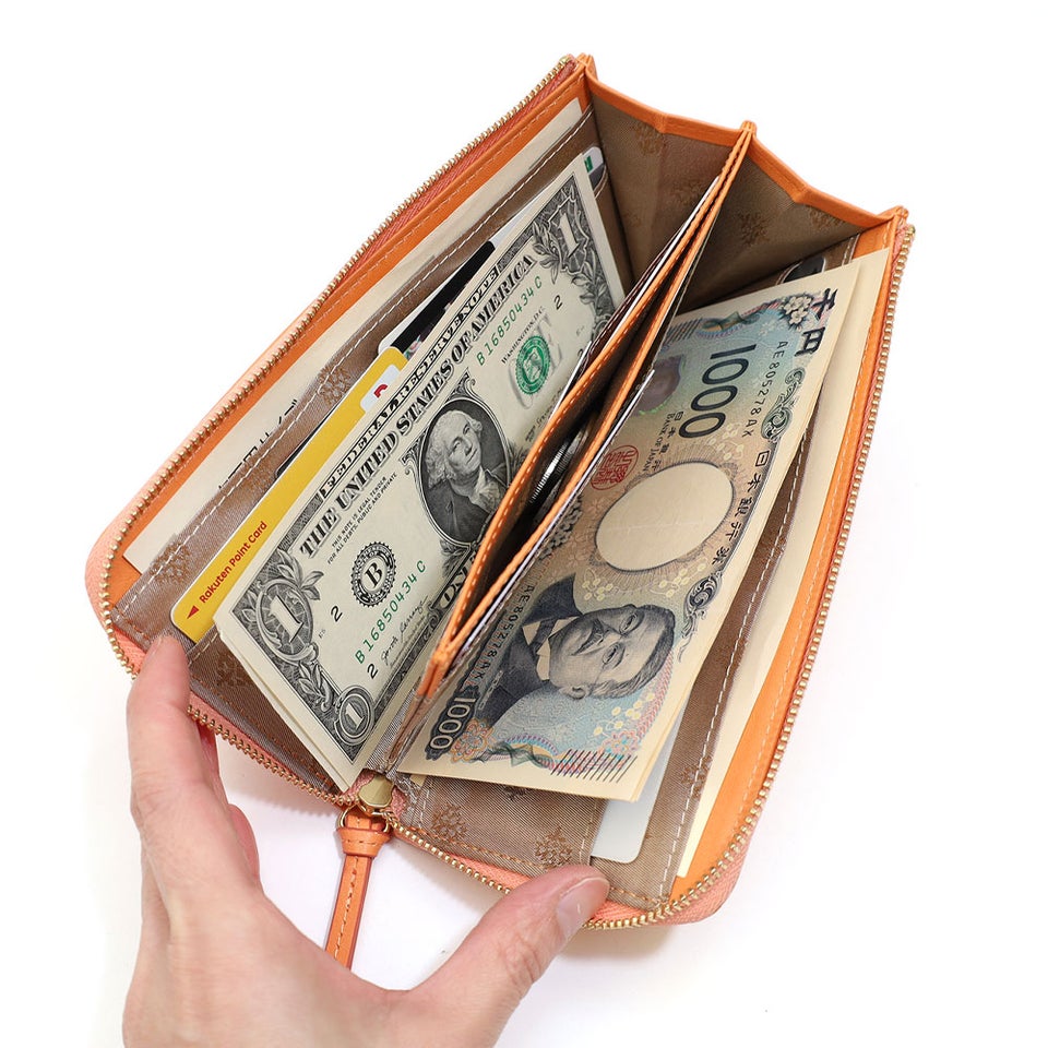 L字ファスナーを開けるだけで紙幣 小銭 カードを一度に見渡せる設計。小銭入れはファスナーレス仕様なので支払い時にすぐ取り出せて会計がスムーズです。財布の中身を探す手間が減り 毎日の買い物や外出時でも快適に使える実用性の高い長財布です。