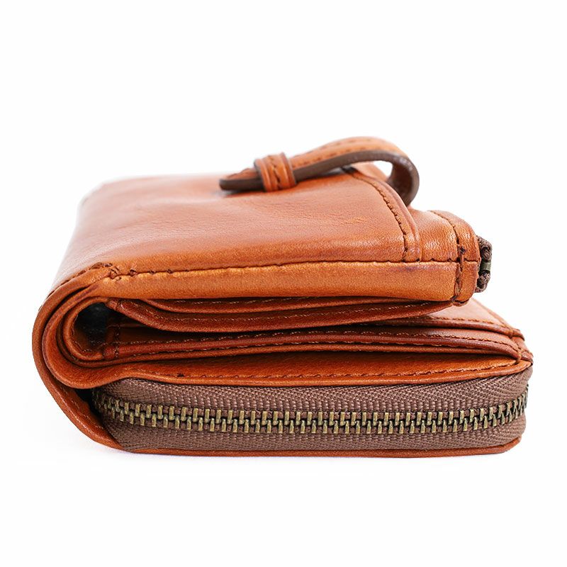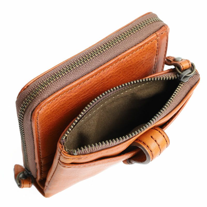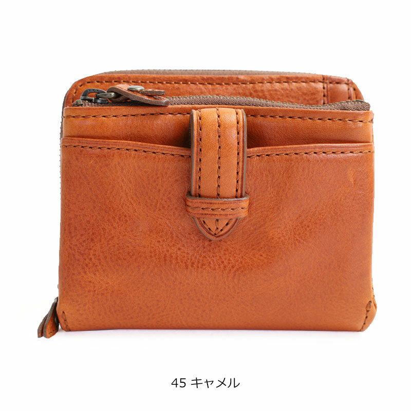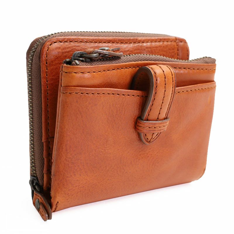 大きく開くファスナー式の小銭入れと、小ぶりのファスナーポケットが備わった、収納力のあるデザイン。