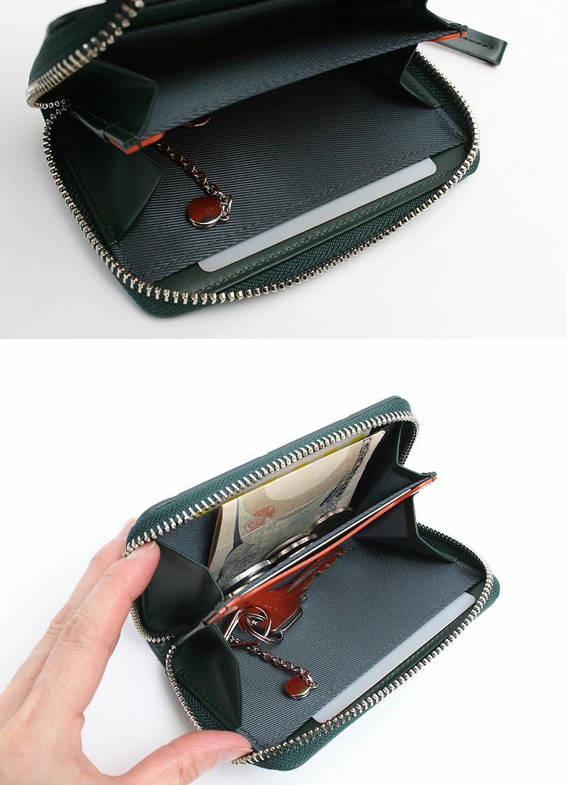 内装には着脱可能なキーチェーンが付属し、車のスマートキーなどの収納にもおすすめです。