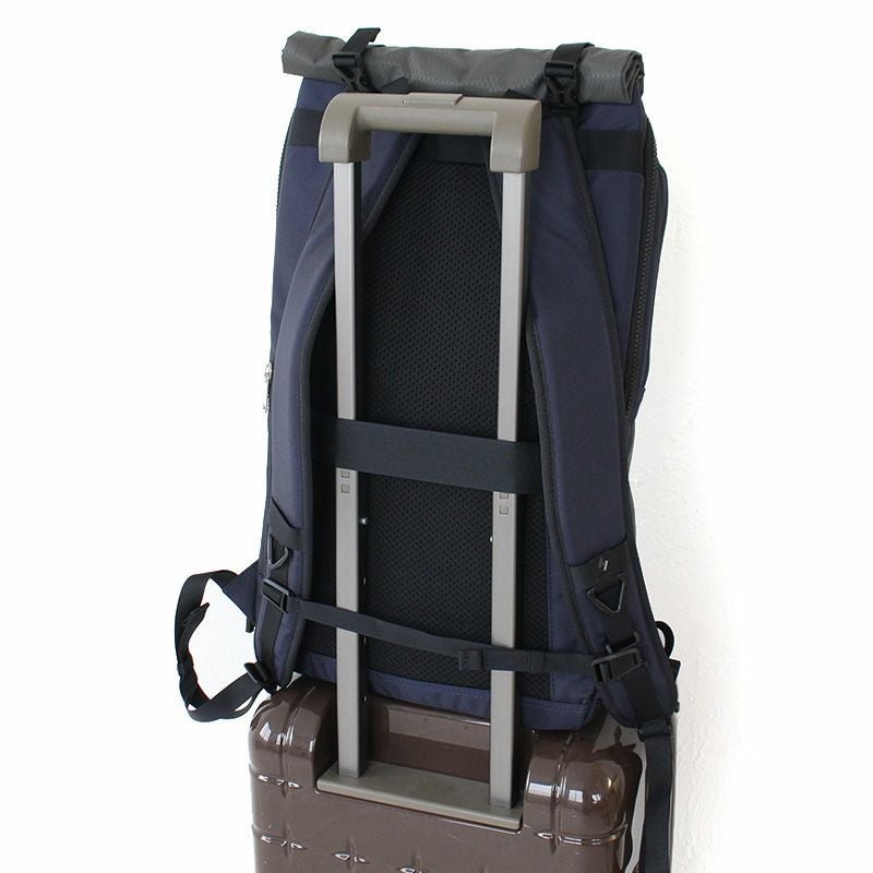背面にはキャリーバッグにセットアップ可能なベルト付き。
