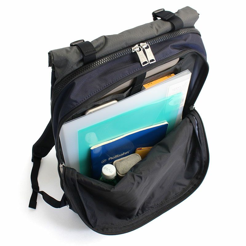 前方は普通のリュック同様上からのファスナー開閉が可能で、