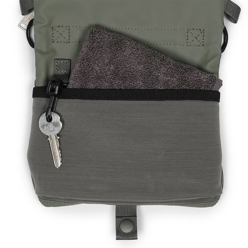 内側にはネットポケットを備え、視認性の高い収納が可能。さらにキー用Dカンを配置し、鍵などの小物をしっかり固定できるため、バッグの中で迷子になりにくい設計です。