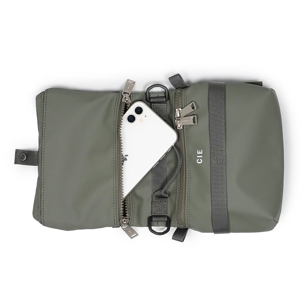高密度に織り上げたミリタリーライクなナイロンテープや、シャトル織機で織られたオリジナルネームを使用。引手にはCIEオリジナルのYKK製亜鉛ダイキャストを採用し、細部までこだわった仕上がりです。