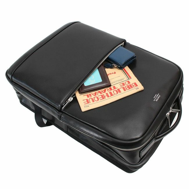 このデイパックは、薄マチな2層式で、B4サイズの書類が入ります。