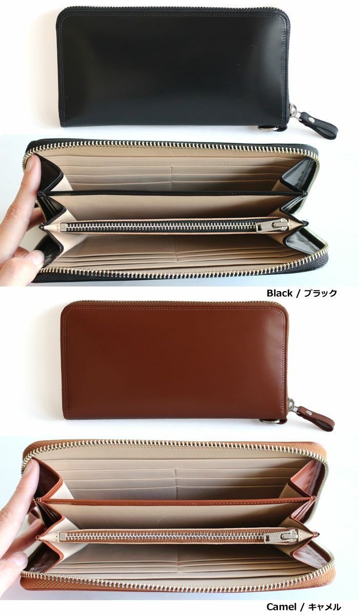 開閉口が大きく開くので中身が一目でわかる高い視認性と、紙幣や硬貨のスムーズな出し入れが可能。また、通常より少し深めのラウンドジップ仕様なので、通帳やチケットも収納できます。充分な収納量に加え、動線に配慮した内装デザインは優れた機能性を備えています。
