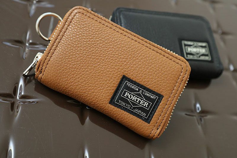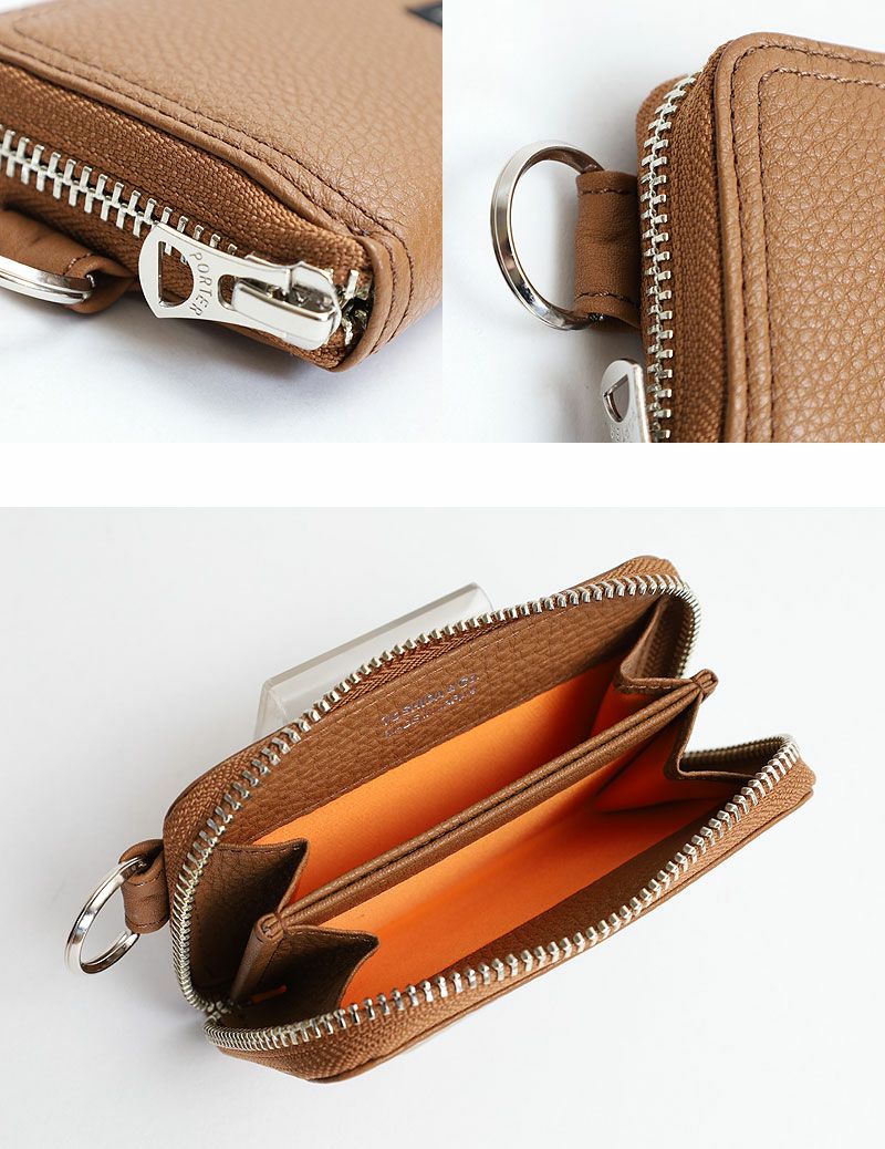 内装にポーターを象徴する鮮やかなオレンジカラーの生地を採用しています。外装には二重リングを備え、カラビナやウォレットコードなどを取り付けて使用可能です。