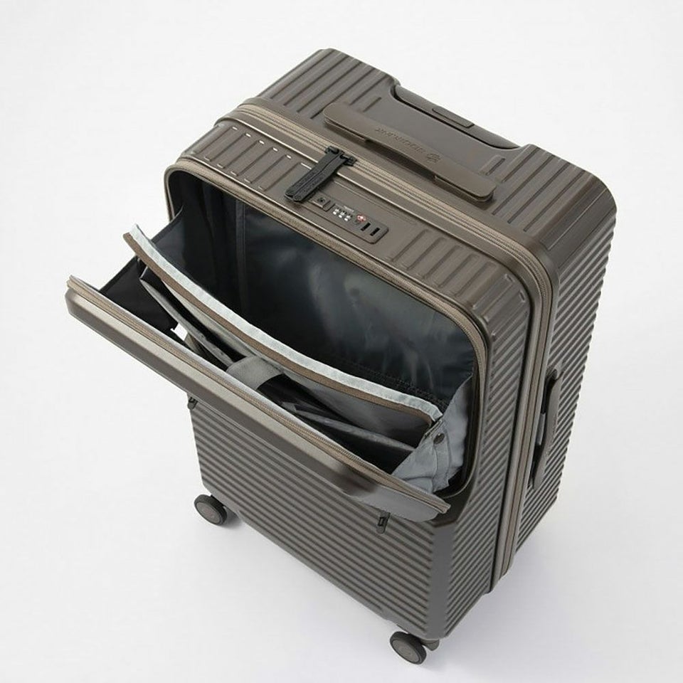 荷物を掛けられるサイドフックや、オリジナルロゴ入り内装生地など、使うたびに快適さを実感できる工夫が満載。TSダイヤルロック搭載で、海外旅行でも安心です。5~7泊程度の旅行にぴったりな容量で、頼れる相棒として活躍します。