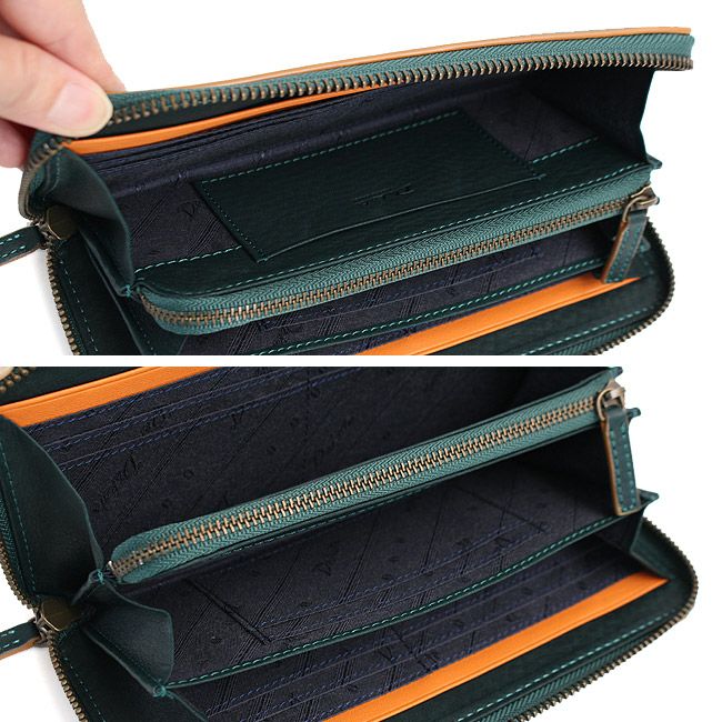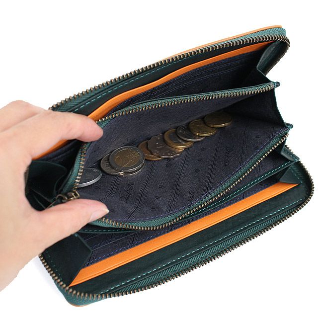 独立して設置された各収納場所は視認性に優れ、中身の出し入れもスムーズ。利便性にも優れた財布に仕上がっています。
