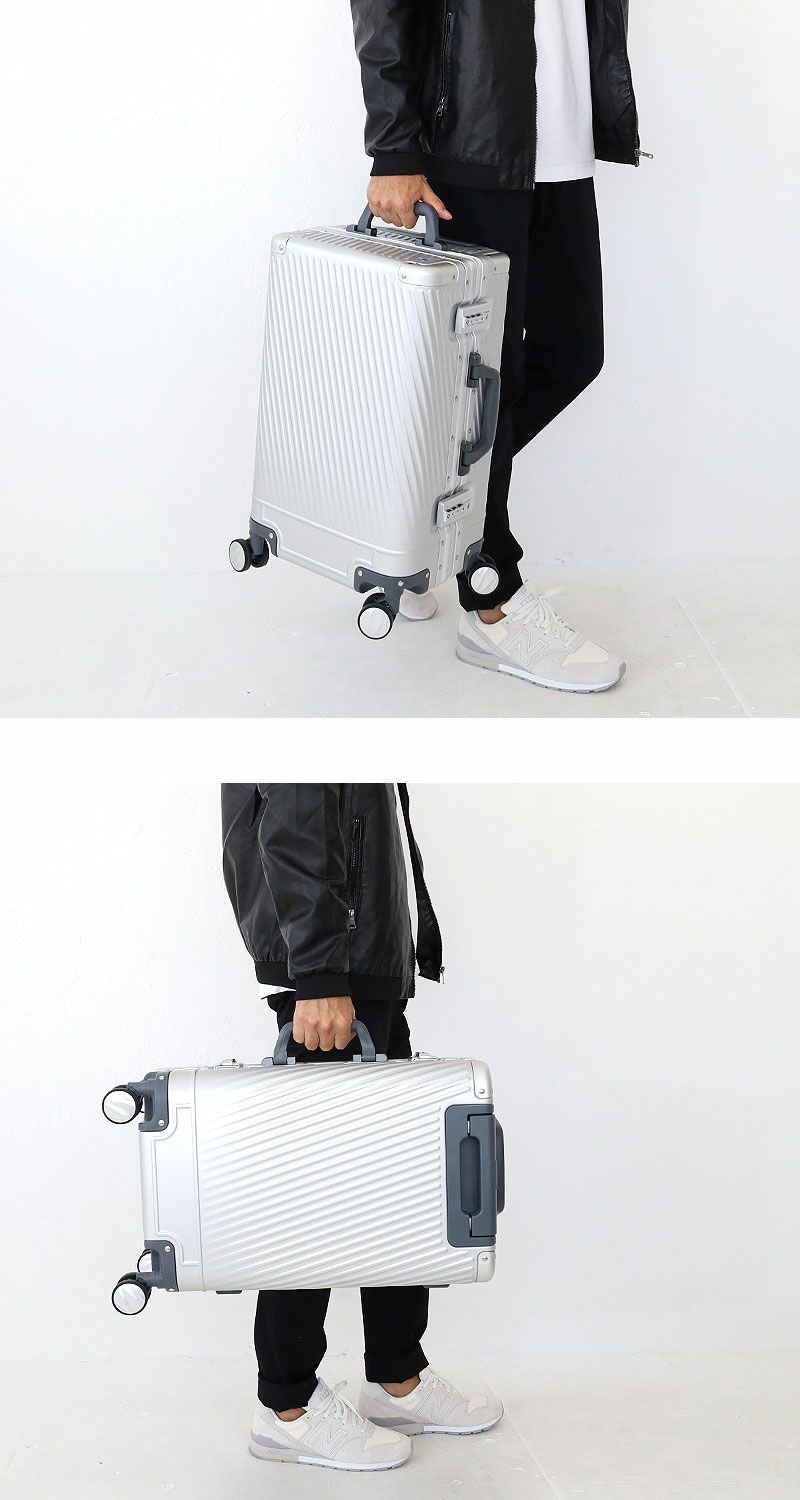 ※アルミニウム素材の特性上、傷やボディシェルの凹みが付きやすい製品ですが、耐久性には問題ございませんのでご安心ください。また、傷や凹みもスーツケースの味としてお楽しみいただける商品となりますので、ご理解いただけますと幸いです。