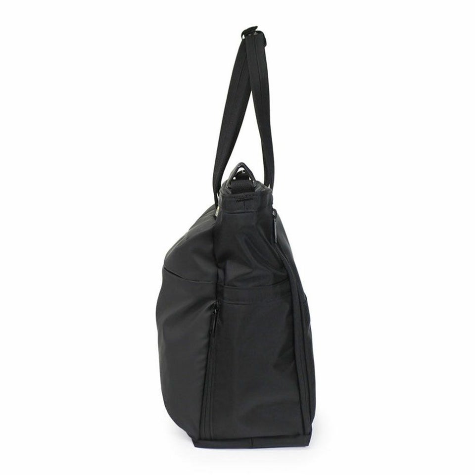 ハンドル持ちとショルダー掛けの2WAYデザイン。通勤や外出などシーンに応じて使い分けが可能です。肩掛けしながらもアクセスしやすい貫通ZIP構造により、動きながら荷物を取り出す快適な使い心地を実現します。