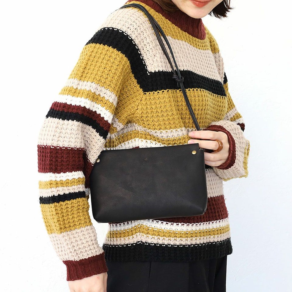 しなやかな革の質感が魅力のシリーズ"クライ"のシンプルなショルダーバッグ。 本体に使用した革は、革の風合いを生かした素上げという仕上げで、ナチュラルな革らしい風合いが特徴。