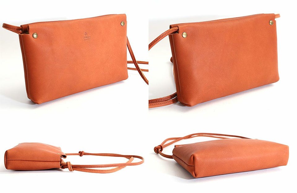オイルを入れ込むことでしなやかさとハリ感を出しており、時間の経過と共に表情が変わってゆく経年変化も楽しめます。 革部分は切りっぱなしになっており、開口部は口元を折り返しカシメ止めをしたシンプルなつくり