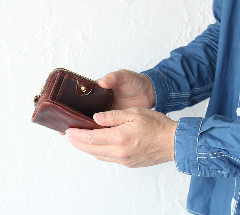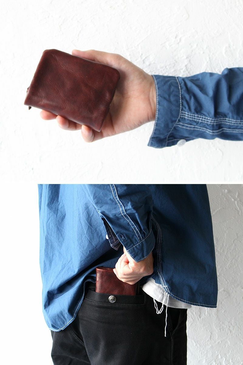 表革は軽いキズがついても指や布でこすることで目立ちにくくなるのが特徴で、ツヤを抑えたアンティークゴールドを採用しており、全体のアクセント!
