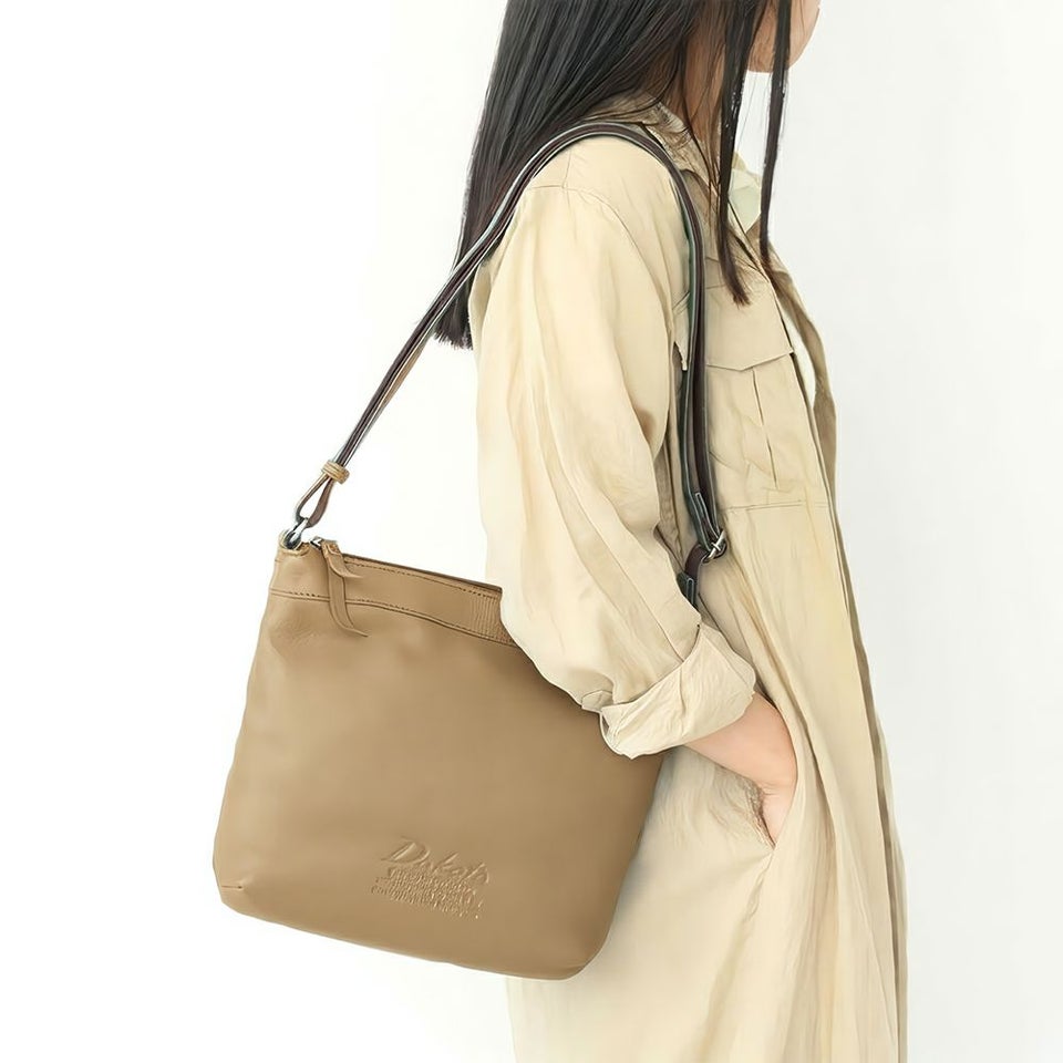 軽量でソフトな牛革を採用し毎日のコーディネートに自然と馴染む使いやすさを実現しています。触り心地の良い柔らかさとしっとりとした質感が特徴で上品さと軽快さを兼ね備えた素材感は長時間の持ち歩きでも負担が少なくデイリー使いにぴったりの仕上がりです。