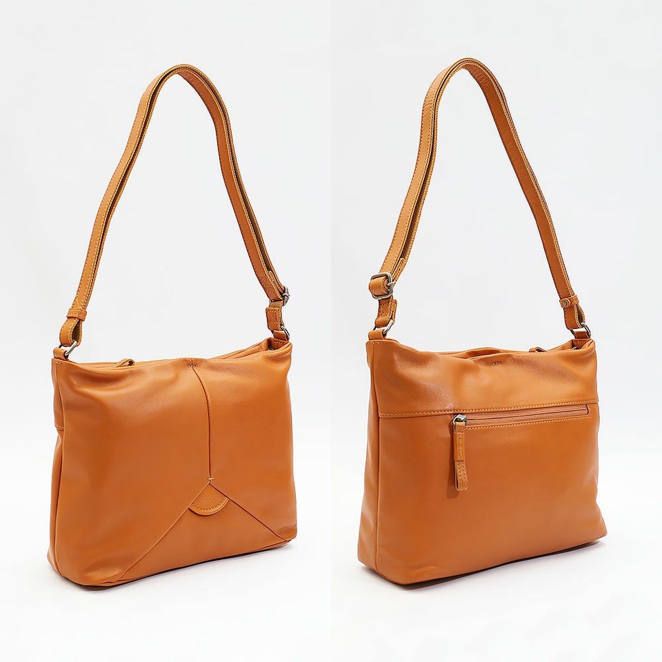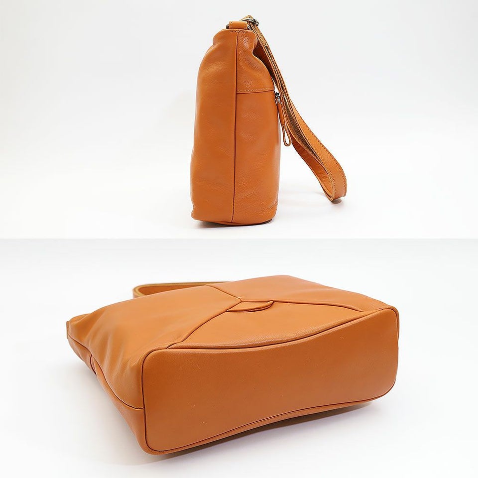 本体は柔らかいレザーながら、底面には芯材を入れることでしっかりと形をキープ。荷物を入れてもシルエットが崩れにくく、美しいフォルムを保てます。ショルダーベルトは肩掛けも斜め掛けも可能で、裏面はコットンテープ仕様。毎日頼れるバランスの良いデザインです。
