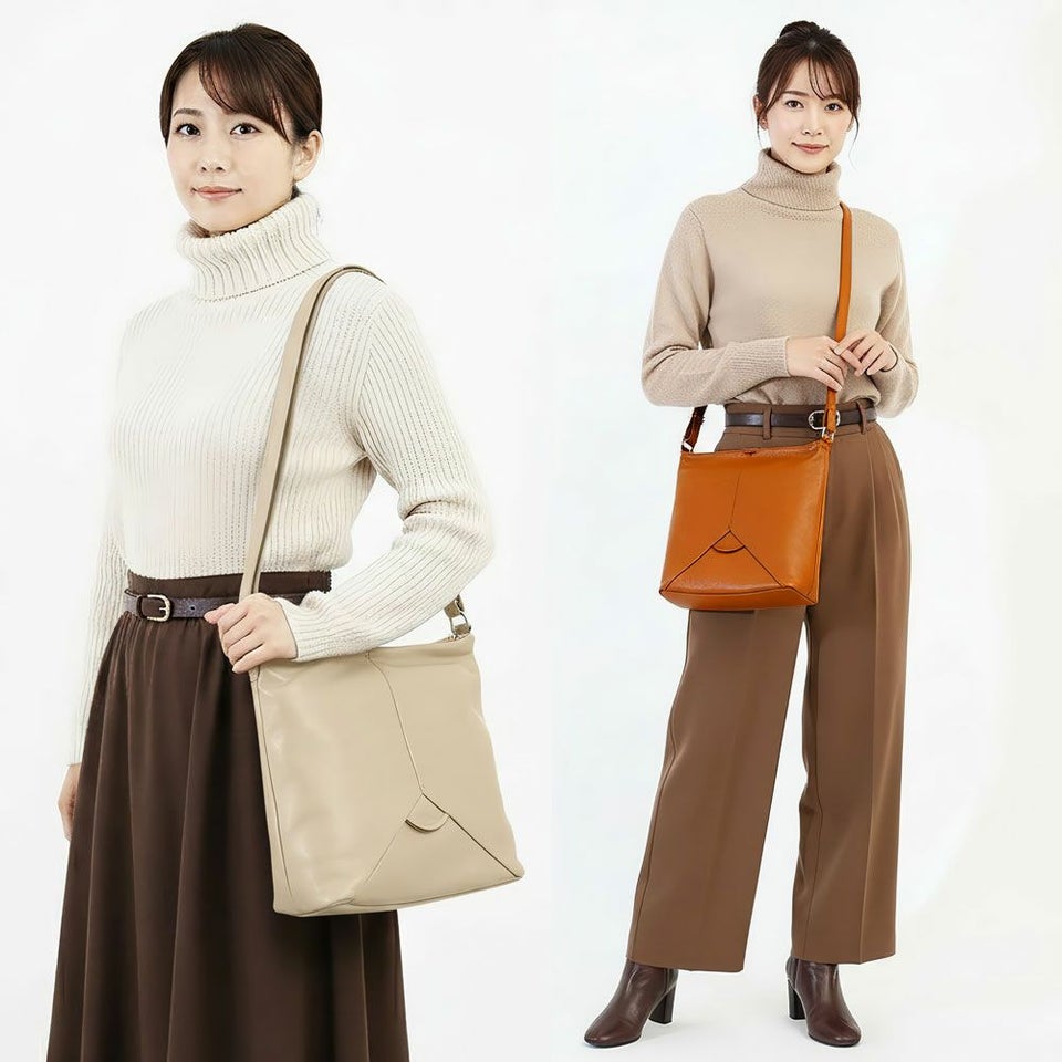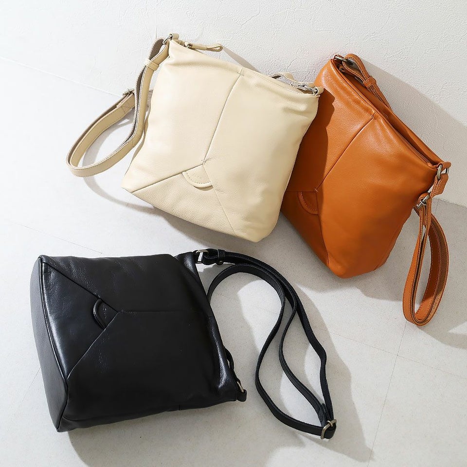 幅広い世代に好まれるタッチ感の良いソフトレザーを使用し、手に吸い付くようなしっとりとした質感が魅力です。袋縫い仕立てで素材の柔らかさをいかし、優しい印象に仕上げています。使うほどに手に馴染み、毎日のスタイルに自然と溶け込む心地よいバッグです。