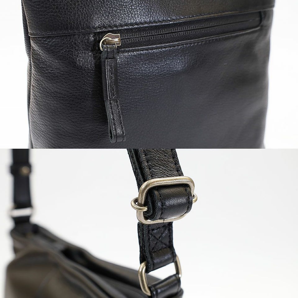 柔らかな本体レザーに対し、底面には芯材を入れることで型崩れしにくく、荷物を入れても美しいフォルムをキープします。ショルダーベルトは肩掛けも斜め掛けも可能で、裏面はコットンテープ仕様。体に馴染みながらも見た目の美しさを保つデザインです。