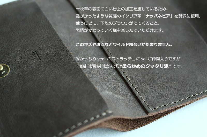 ぐにゃっと柔らかい素材でもともとのコンセプトで作られたゴートスキンのstraccioより今回はm+でもお馴染みの素材、ミネルバリスシオとブッテロで作られました。 なので、前のstraccioより、かっちりしています。