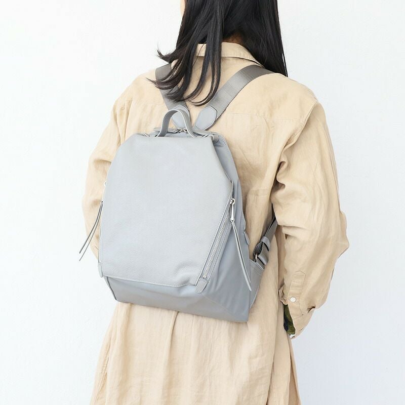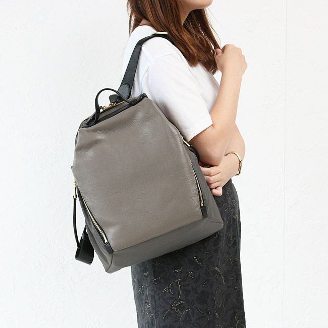 カジュアルに見えがちなリュックですが、シックなカラーと牛革のコンビで大人のリュックに仕上がりました。