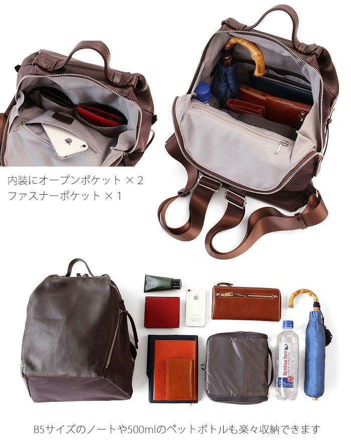 祝日も発送! box21 ボックス21 牛革×ナイロンの上品なリュック リュックサック 送料無料