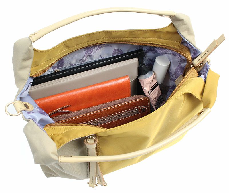 スタイリッシュなデザインながら口開きが良く、中が見やすくなっています。バッグの外にも中にもポケット多数で小物がすっきりと収納できます。雨の日も晴れの日もお洒落を楽しみたい、抜群の使い勝手で毎日活躍してくれるバッグです。