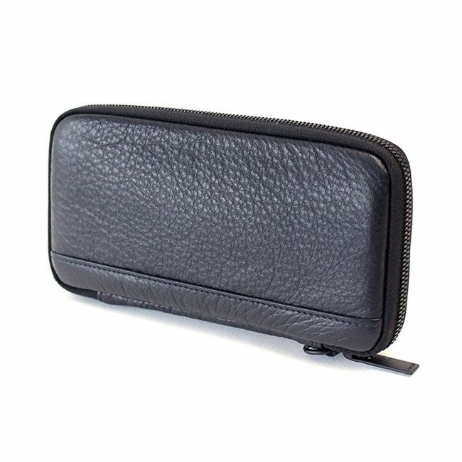 シボのあるしっとりとした手触りの上質な革を使用した大人のシリーズ。内装生地はさりげなく、迷彩プリントとなっており遊び心がちらりと垣間見えます。ブラックはシルバーの金具で洗練された高級感を。ネイビーはマットブラックの金具でカジュアルダウンしているので、どんなスタイルにも合わせやすくなっています。