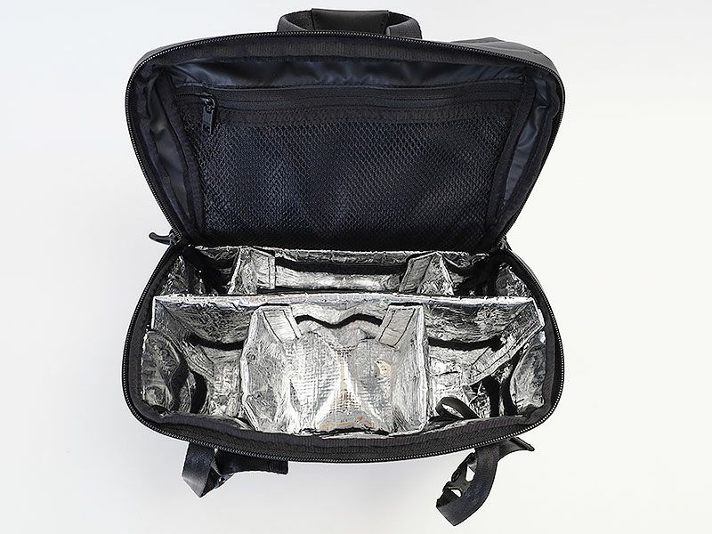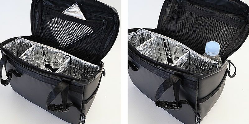 さまざまな高さの調味料類をまとめて一度に収納でき、 外装に使われている防水素材によりどんなところにも持っていけます。