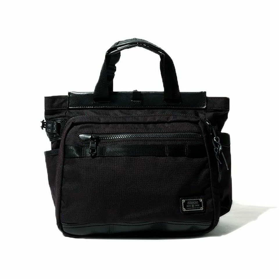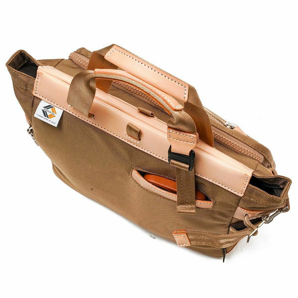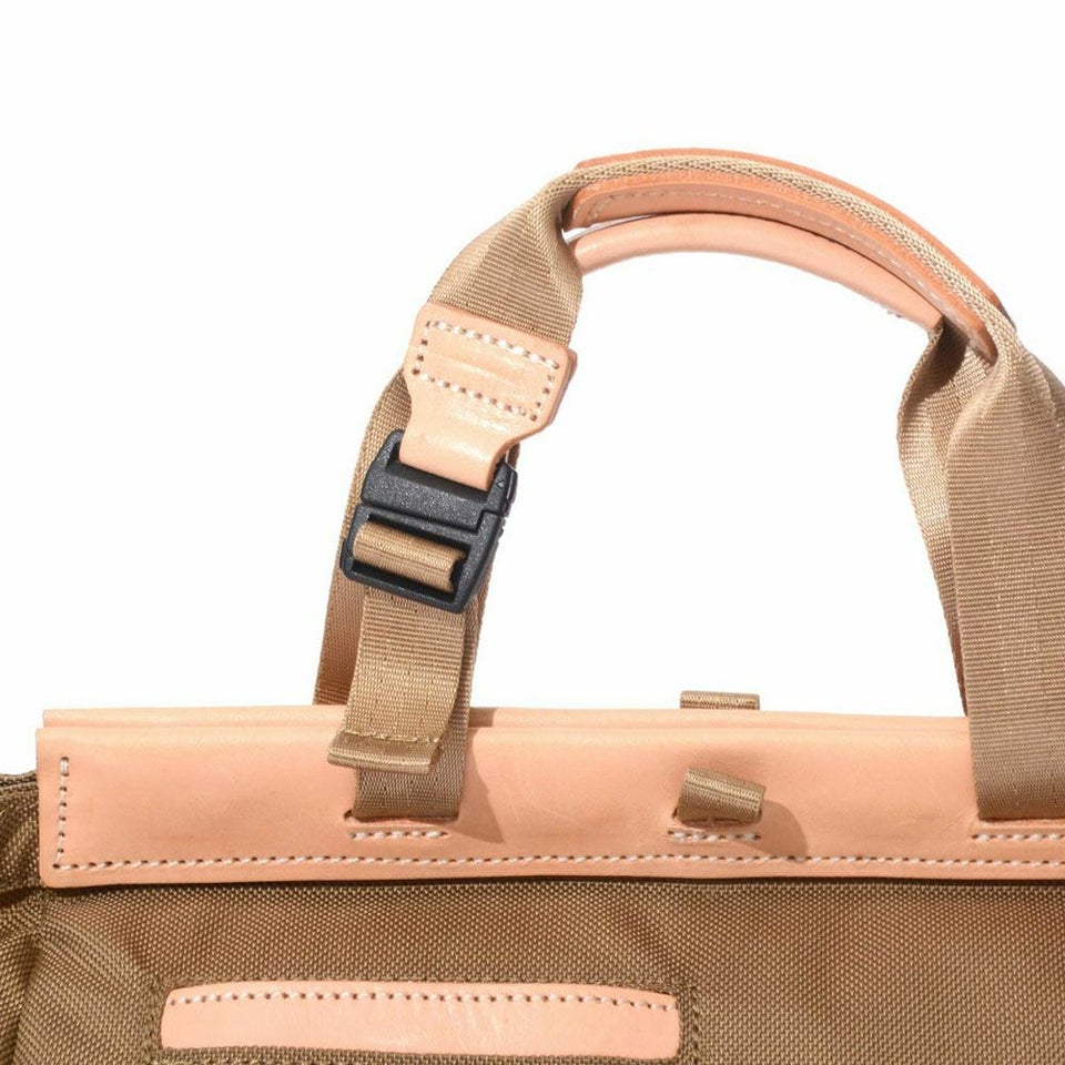雰囲気のある革とバリスティックナイロンの組み合わせのトートバッグ。
