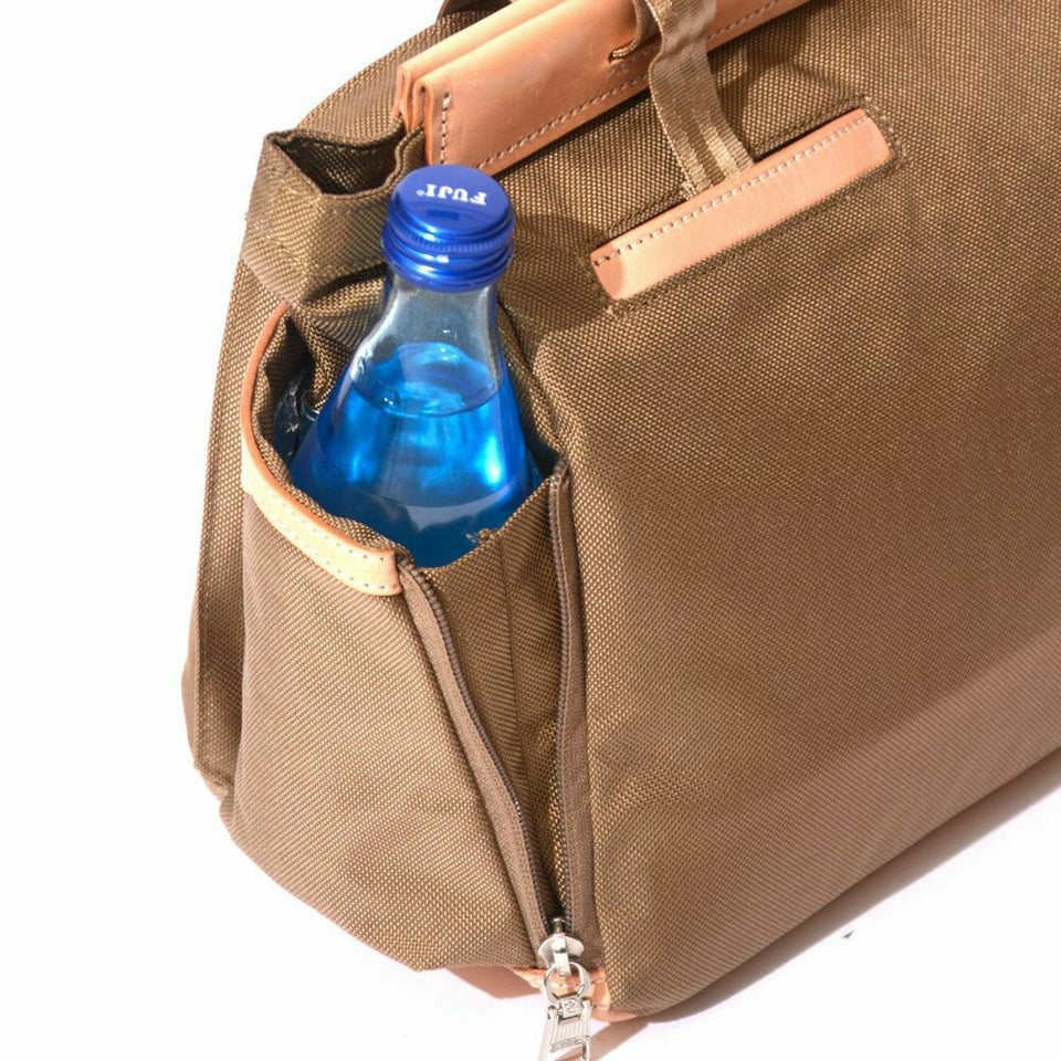大きく2つのポケットと保冷素材のドリンクホルダーが付いたコンパクトトート。ハンドル部分にバックルが付いておりカートにも引っかけられます。