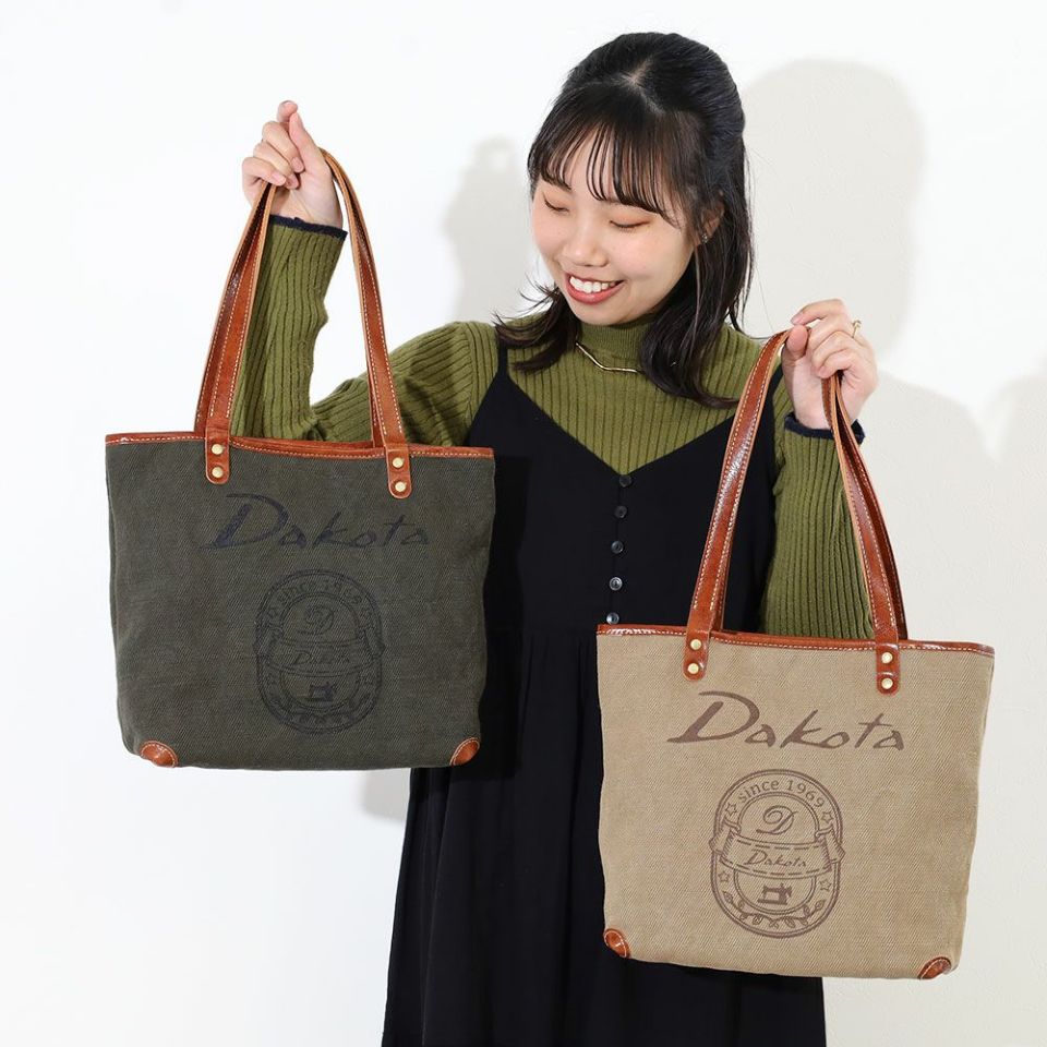 Dakotaロゴと生地の風合いがアンティークな装いを演出してくれるデイリーバッグシリーズ