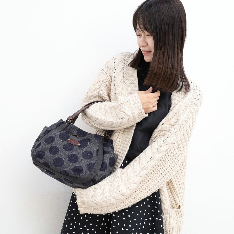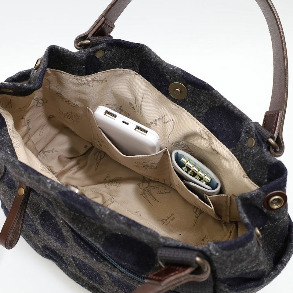 サイドのスナップボタンで2フェイス仕様に。ちょっとしたお出かけに最適な2フェイスミニトートです。小ぶりな見た目ながら、マチ幅がしっかりあるので、長財布やペットボトル、手帳などが楽に入ります。