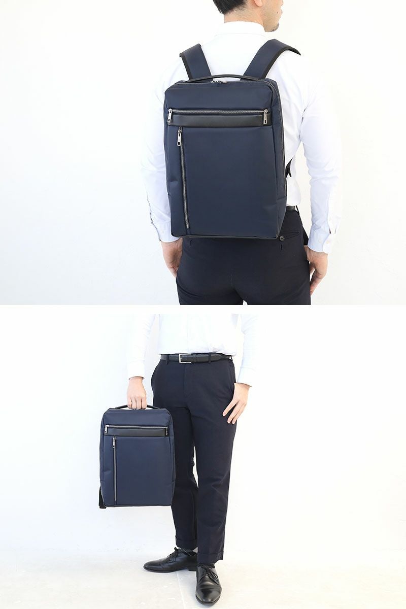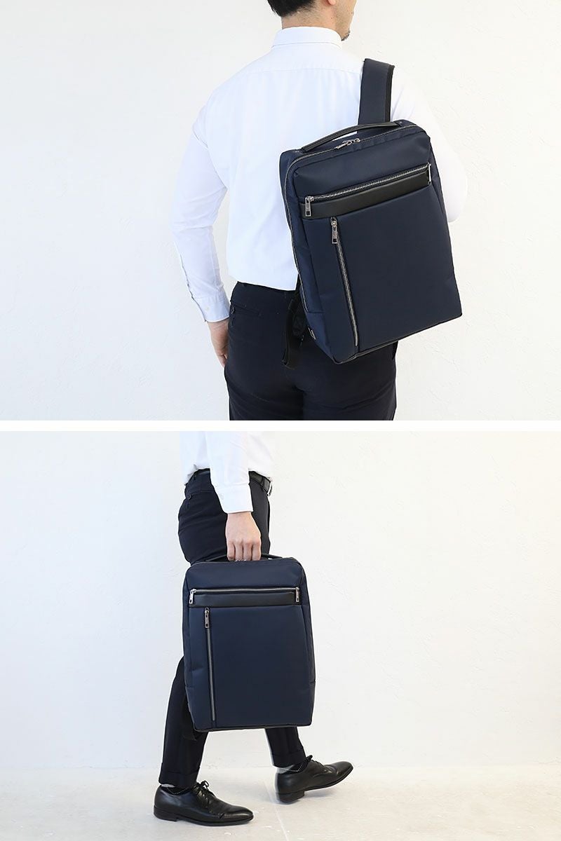 耐久性に優れ光沢のあるツイル生地を使用したビジネスリュック。