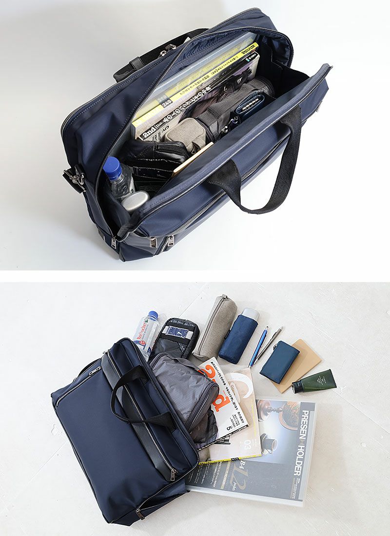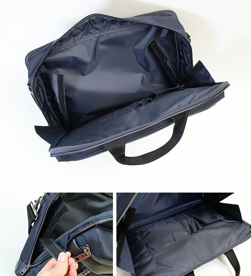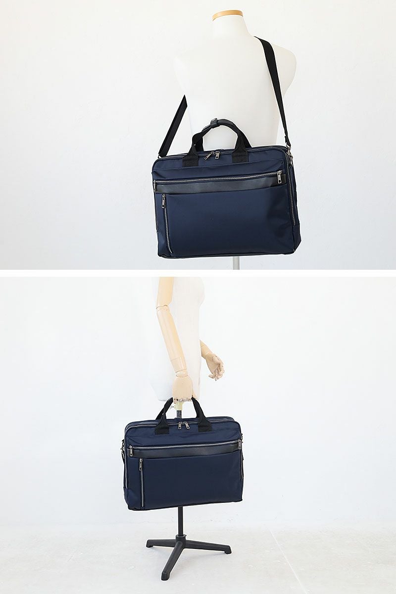 耐久性に優れ光沢のあるツイル生地を使用したビジネスバッグ。