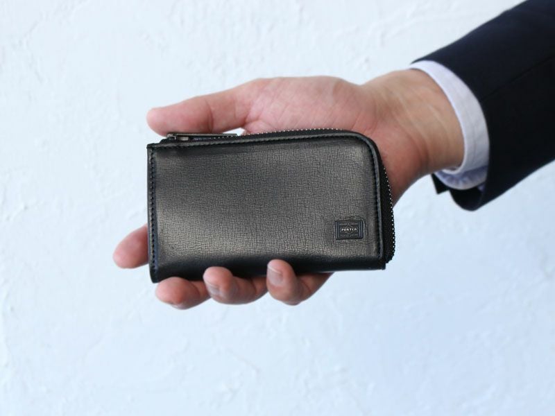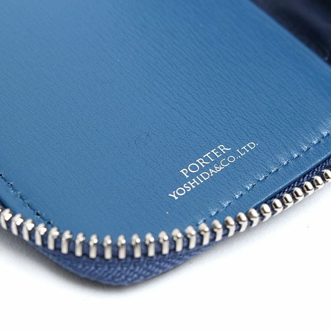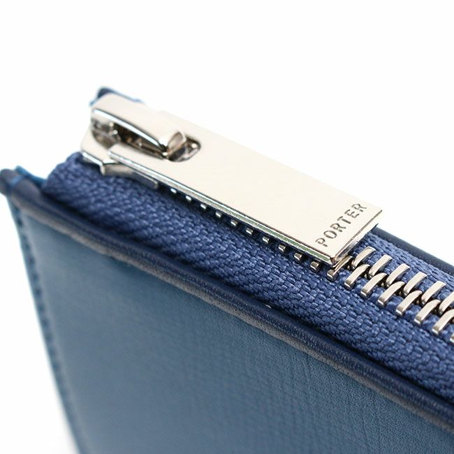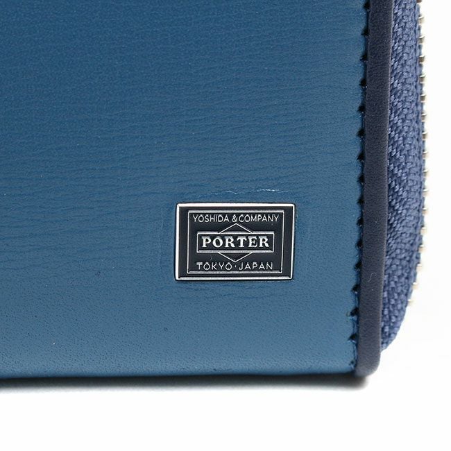 また内装は素材の異なる2種類の革を箇所によって使い分けているので、より贅沢なつくりとなり高級感を高めています。ファスナーは高級感があり手当たりも良いエクセラファスナーを使用しています。表面にはヘリの革の色と合わせたPORTERネームのオリジナル金属プレートを採用し、表革に埋め込むことで見た目をスッキリとさせました。